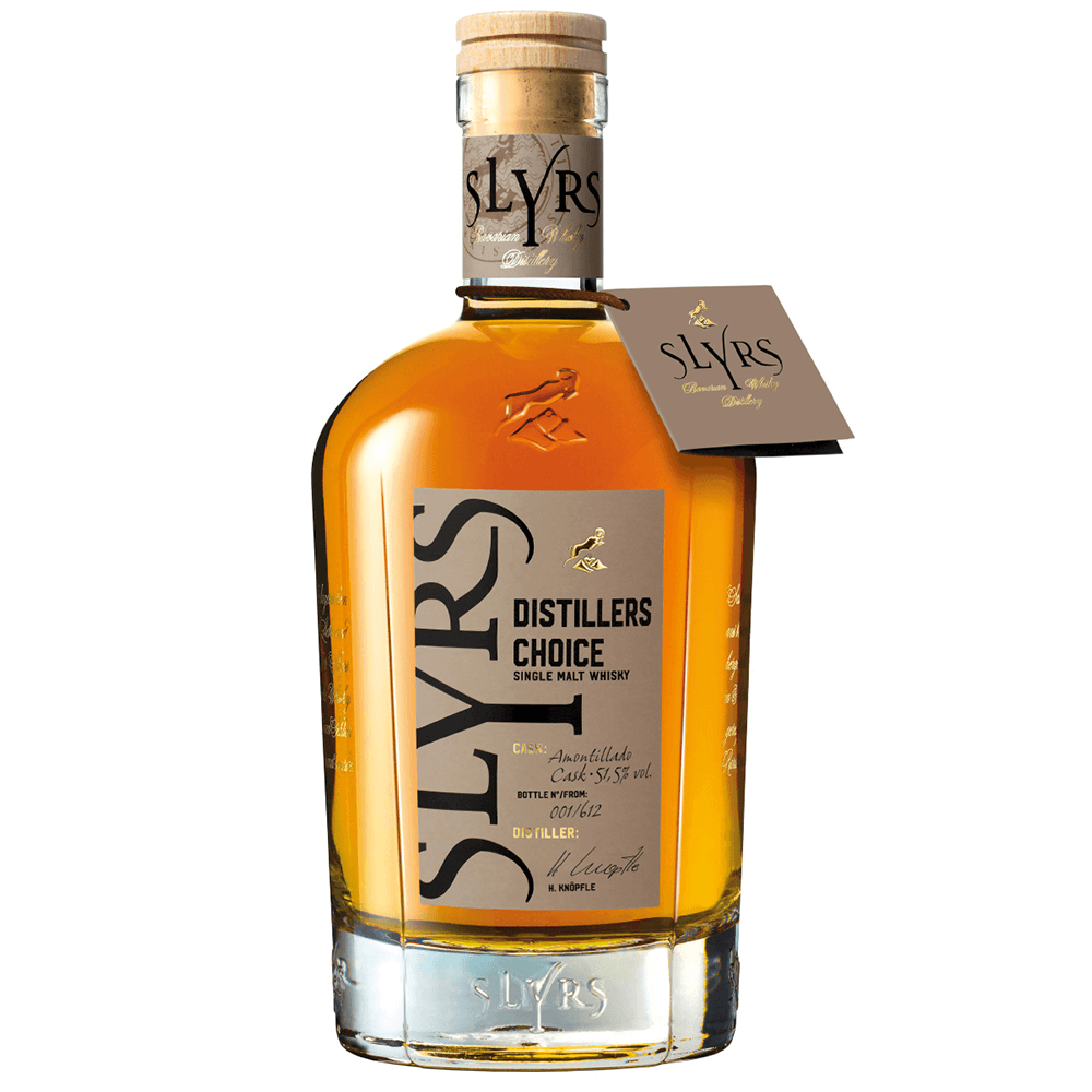 Im Februar 2025 präsentieren wir die fünfte Slyrs Distillers Choice Edition mit einer Sherry Amontillado Cask Reifung. Wie die vorangegangenen 4 Varianten streng limitiert, als Bavarian Single Malt Ausfühhrung abgefüllt. Der Whisky wurde 2014 auf traditionelle Art destilliert und reifte 11 Jahre in einem Amontillado Single Cask. Mit 51,5% vol., schließlich abgefüllt, hat der Slyrs Head of Brand Experience und Keeper of the Quaich Helmut Knöpfle in Zusammenarbeit mit dem Slyrs Fass-Management einen Whisky besonderer Güte ausgesucht und erschaffen. Dieser Whisky vereint die Slyrs DNA und die würzige Aromatik des Amontillado Sherry auf beeindruckende Weise. Der Whisky trägt auf dem Label keine Altersangabe, ist nach Aussagen des Hersteller 11 Jahre lange in Amontillado gereift.